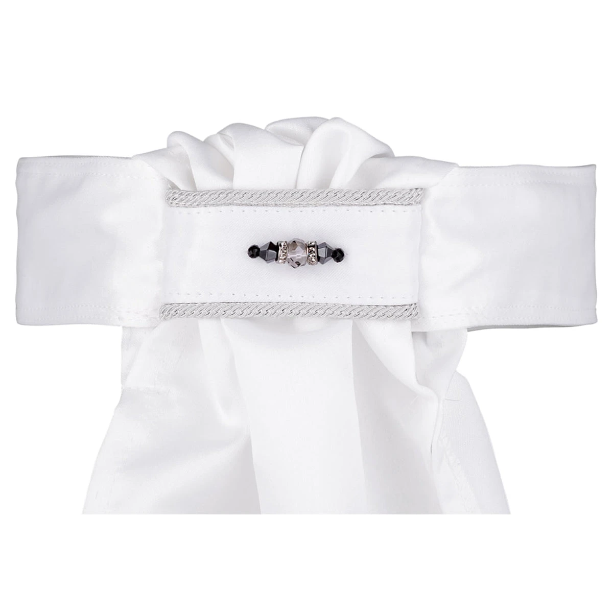 These stock ties are beautifully sewn by hand, an All Tied Up Stock Tie adds refined and fashionable style to your Dressage or Derby Day ensemble. Exquisite, washable fabric is decorated with embellishments that are securely sewn – for that touch of sophisticated sparkle. No additional pinning is required. A sturdy velcro rear closure lets this tie go on easily and stay put while you ride.