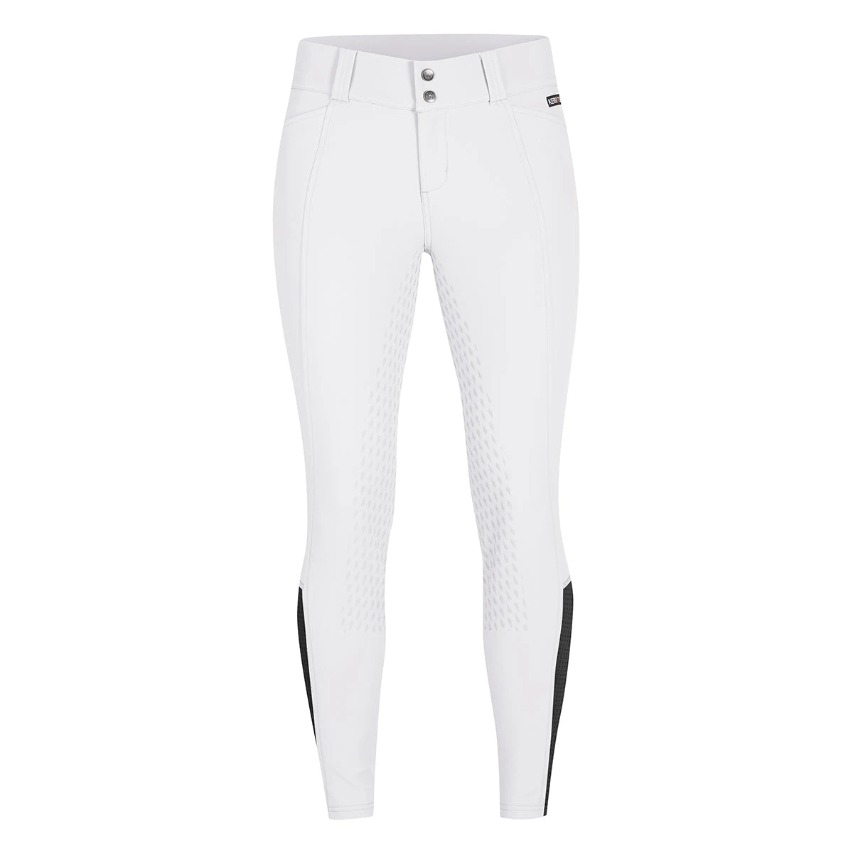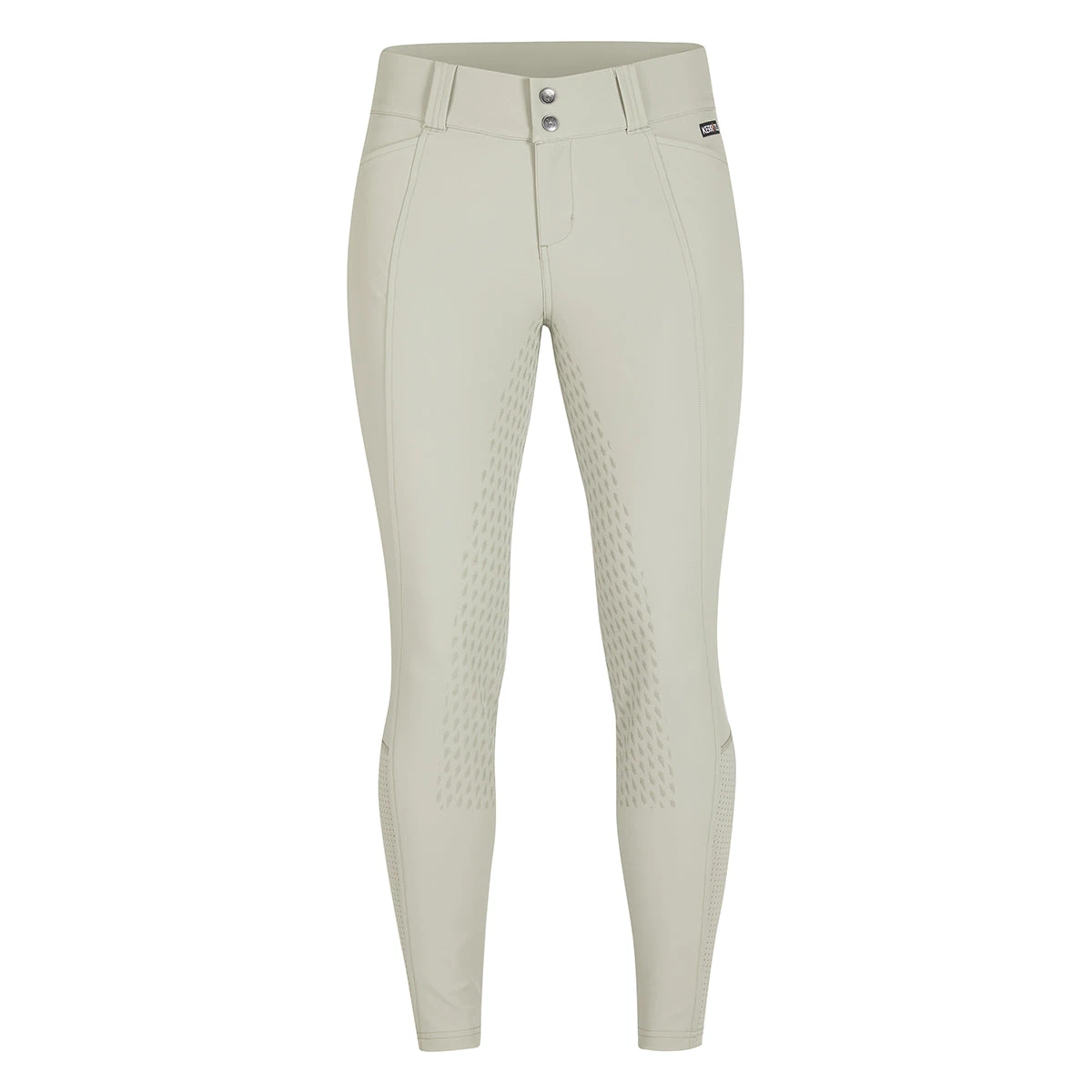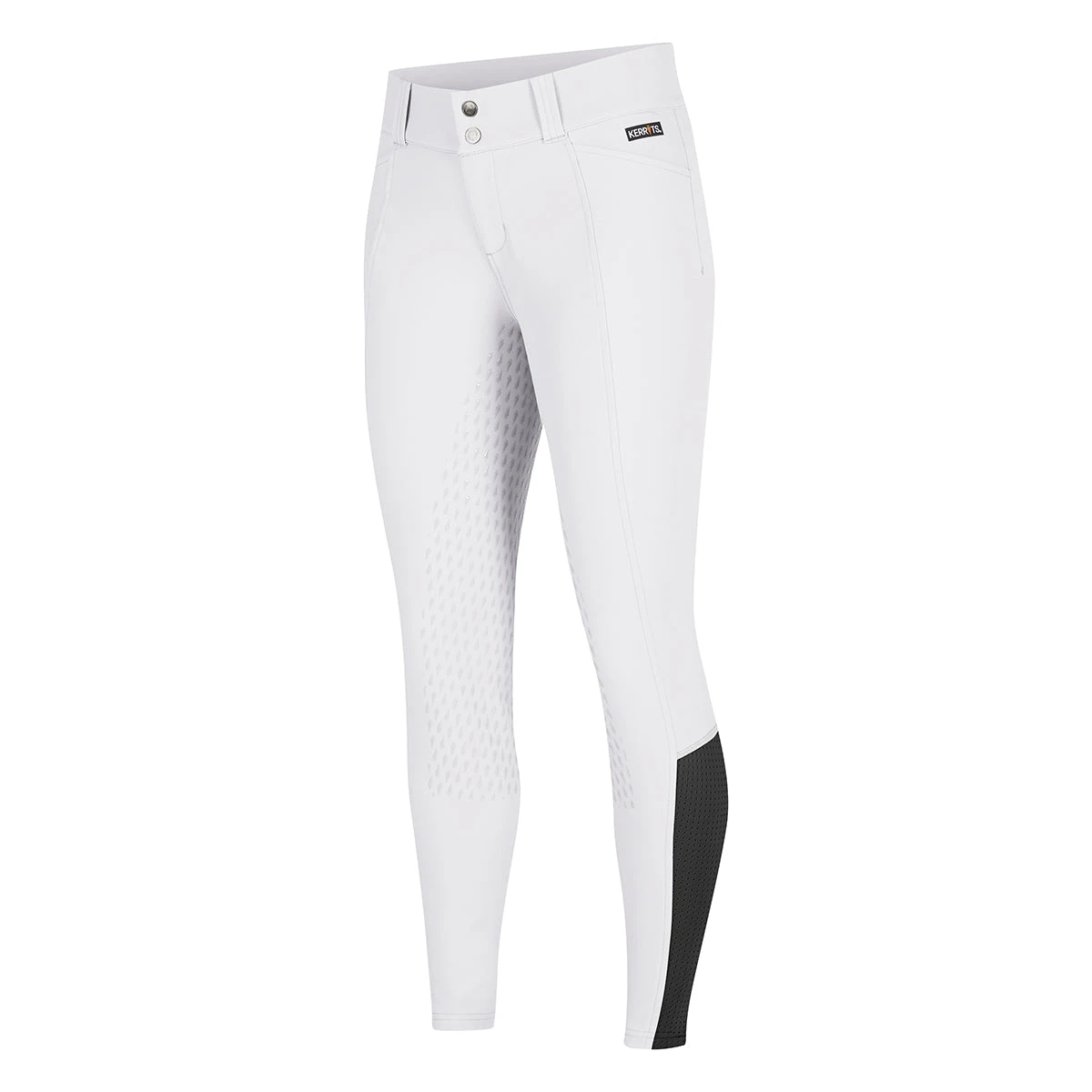 Exceptional performance meets tradition. The stretch-woven fabric is infused with the cooling power of Ice Fil®, to keep you cool and comfortable. Provides excellent coverage, four-way stretch integrity, and support. The fabric’s exterior is stain and dirt resistant, with figure flattering seams are thoughtfully placed for articulation in the saddle. Along with Kerrit Sticks™ silicone patches combine for a fluid, polished pant that helps women look and ride their best.Â
