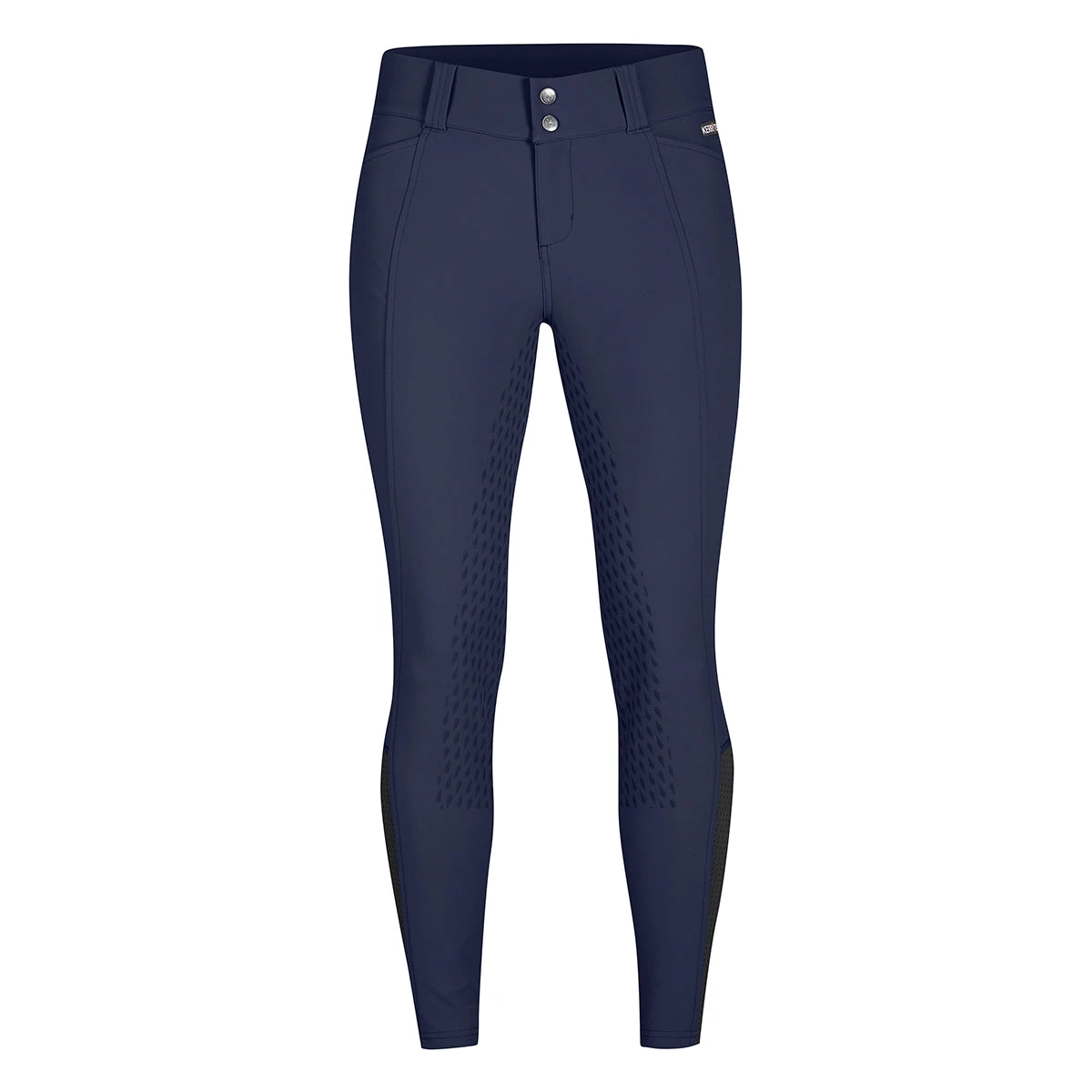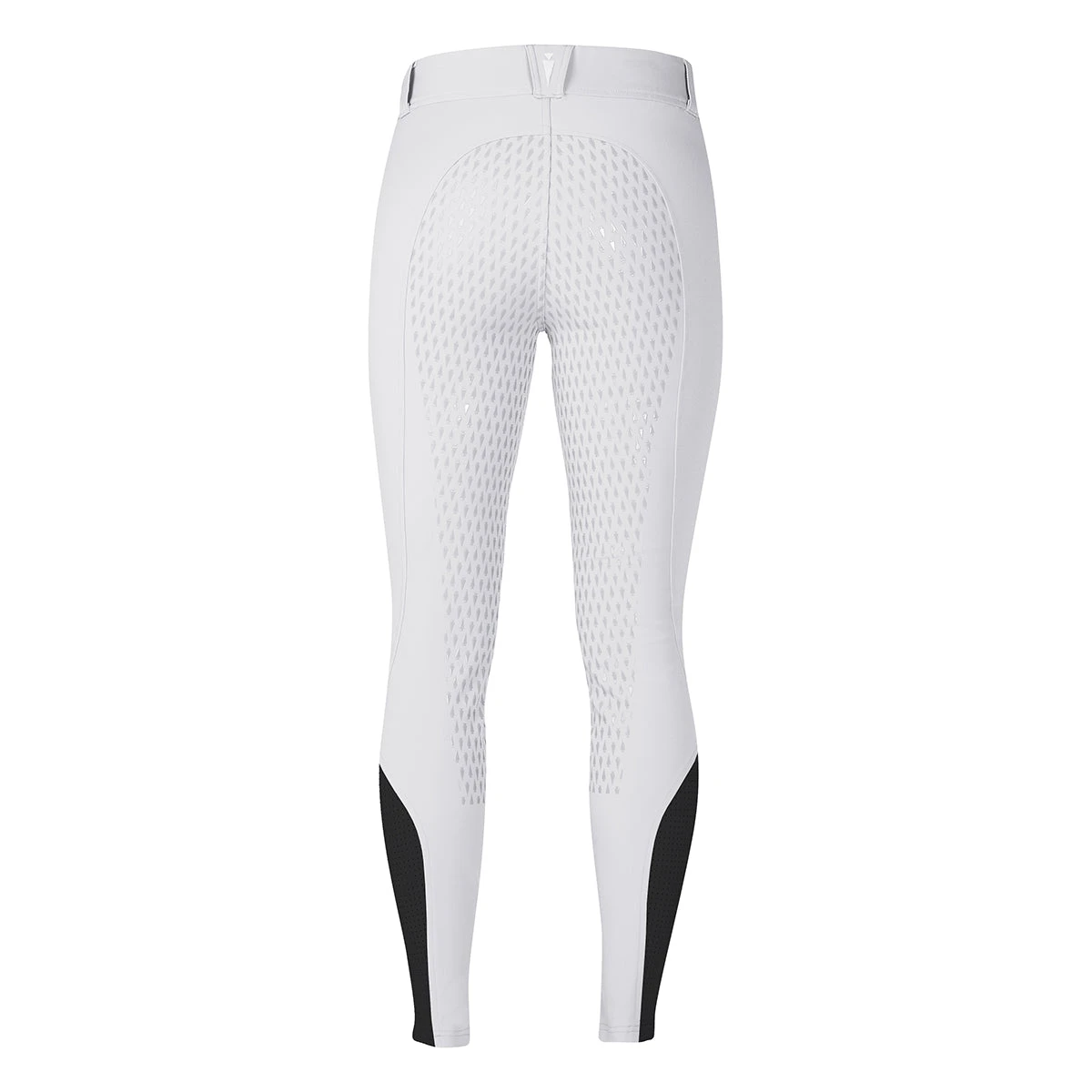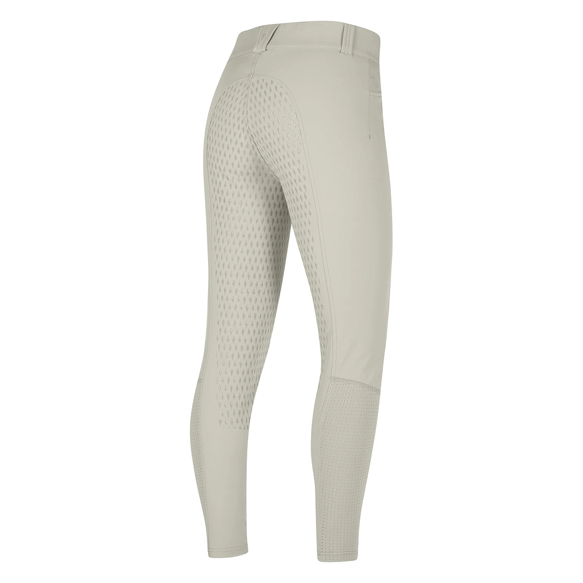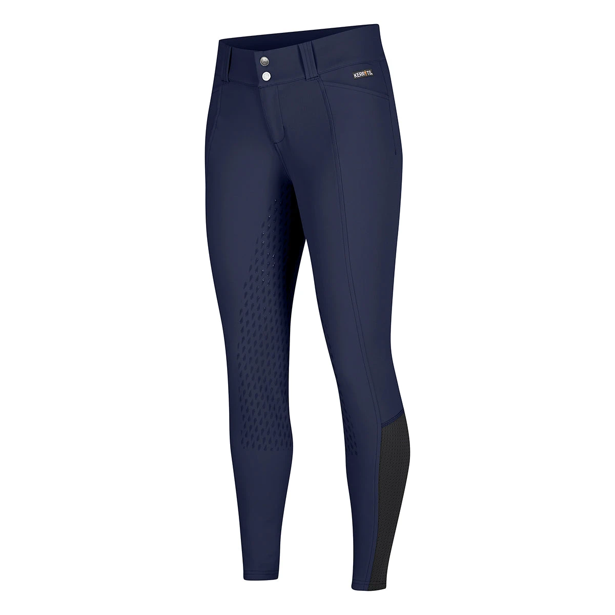 Exceptional performance meets tradition. The stretch-woven fabric is infused with the cooling power of Ice Fil®, to keep you cool and comfortable. Provides excellent coverage, four-way stretch integrity, and support. The fabric’s exterior is stain and dirt resistant, with figure flattering seams are thoughtfully placed for articulation in the saddle. Along with Kerrit Sticks™ silicone patches combine for a fluid, polished pant that helps women look and ride their best.Â